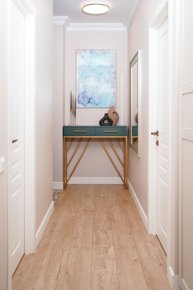 Узкий простенок в коридоре декорировали консолью и картиной.