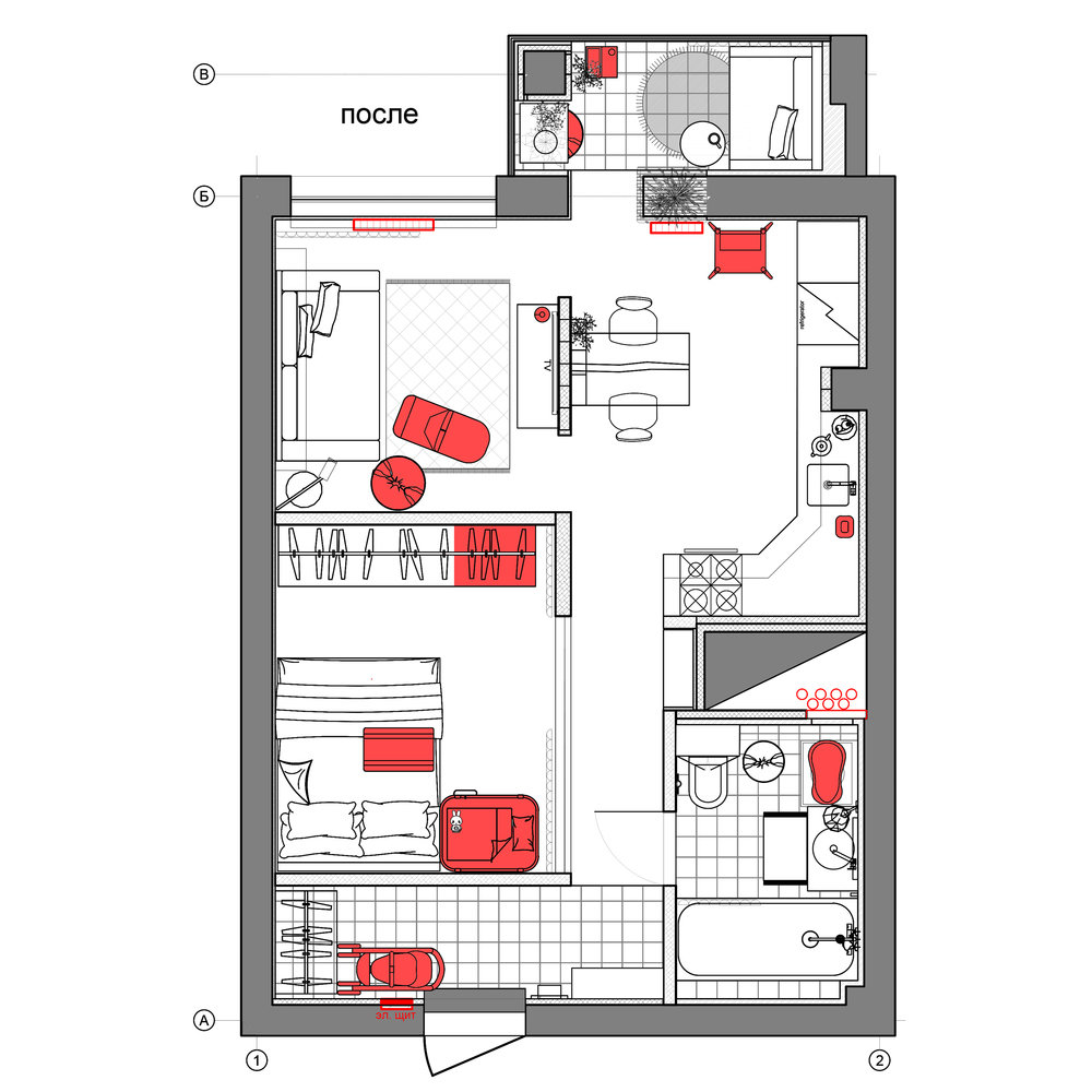 Очень крутая перепланировка из однушки в двушкуДизайн