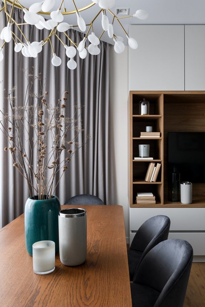 Светлая трешка с мятно-голубой кухней в нишеДизайн