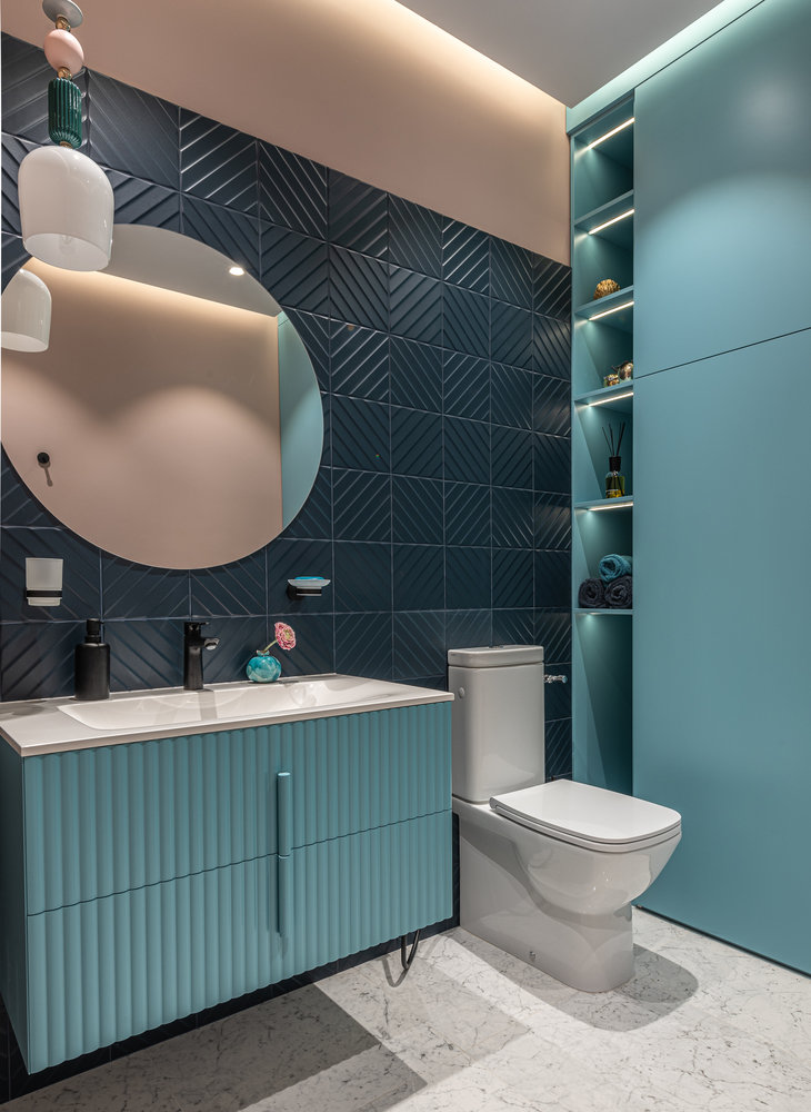 Взрыв цвета в интерьере трешки 90 м² на мансардном этажеДизайн