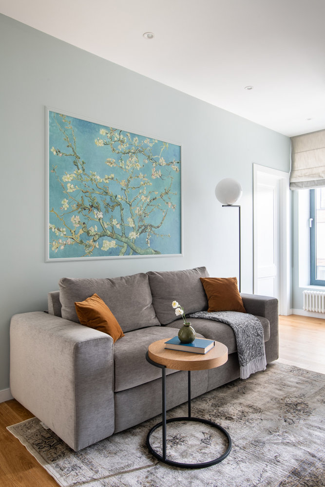 Обои со стеклярусом, фреска с цветущим миндалем Ван Гога: трешка 65 м² для семьи с двумя дочками4,8