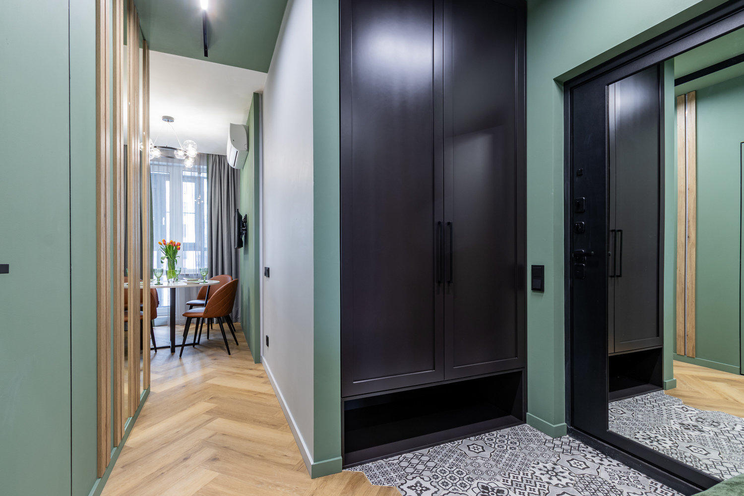 Двушка 50 м² в зеленых тонах для юной девушкиДизайн