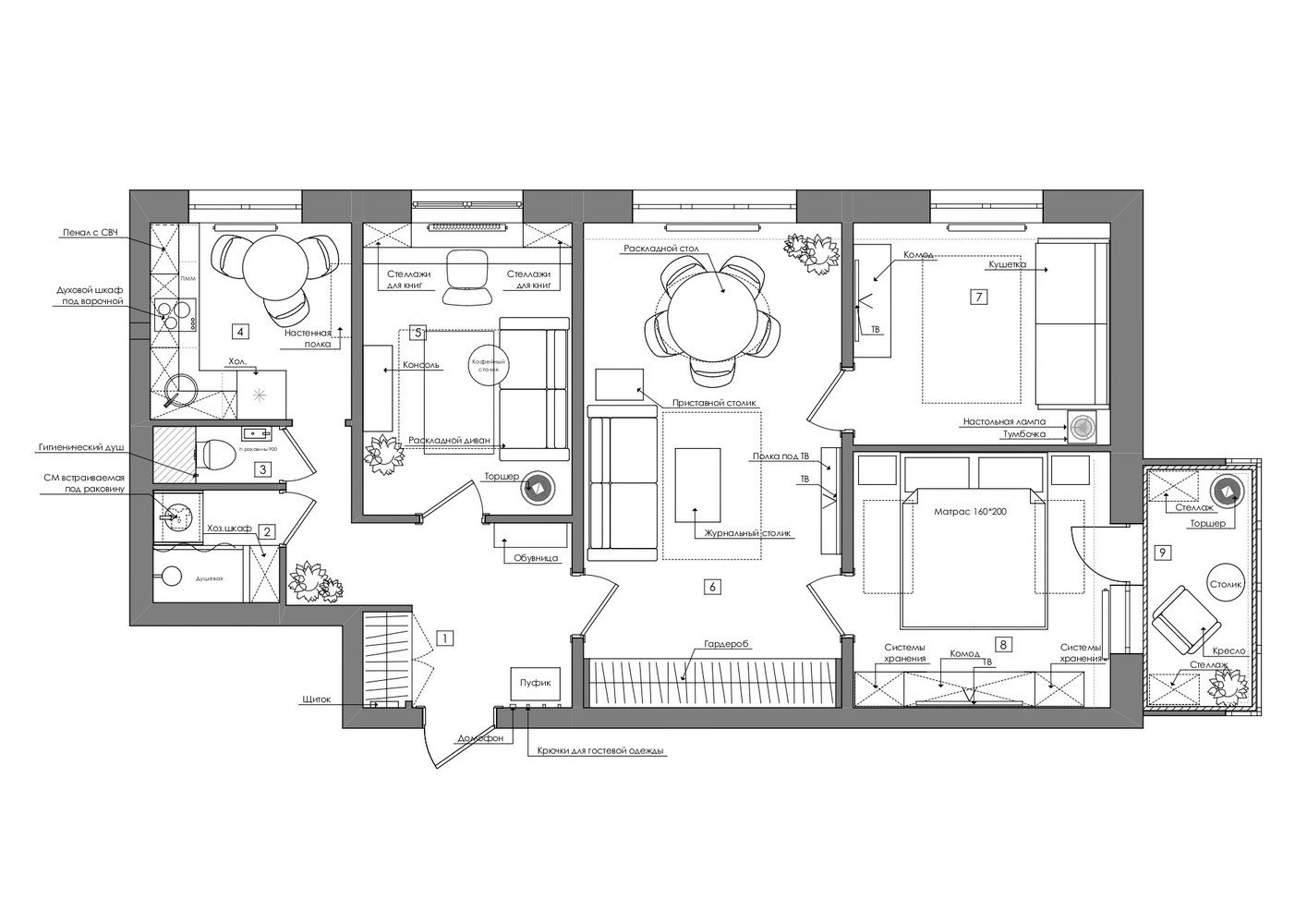 Фотография: Планировки в стиле , Современный, Квартира, Проект дня, Москва, 4 и больше, 60-90 метров, Алеся Котова – фото на INMYROOM