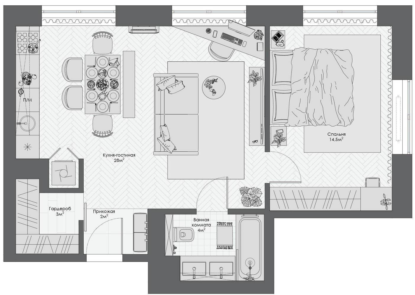 Небанальный проект двушки 54 м² в стиле бохоДизайн