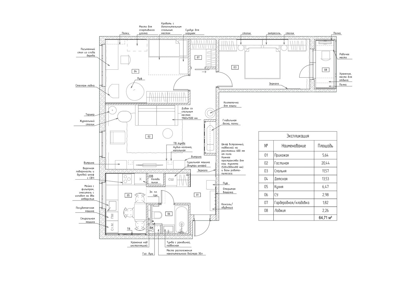 Трешка 65 м² в скандинавском стиле в панелькеДизайн