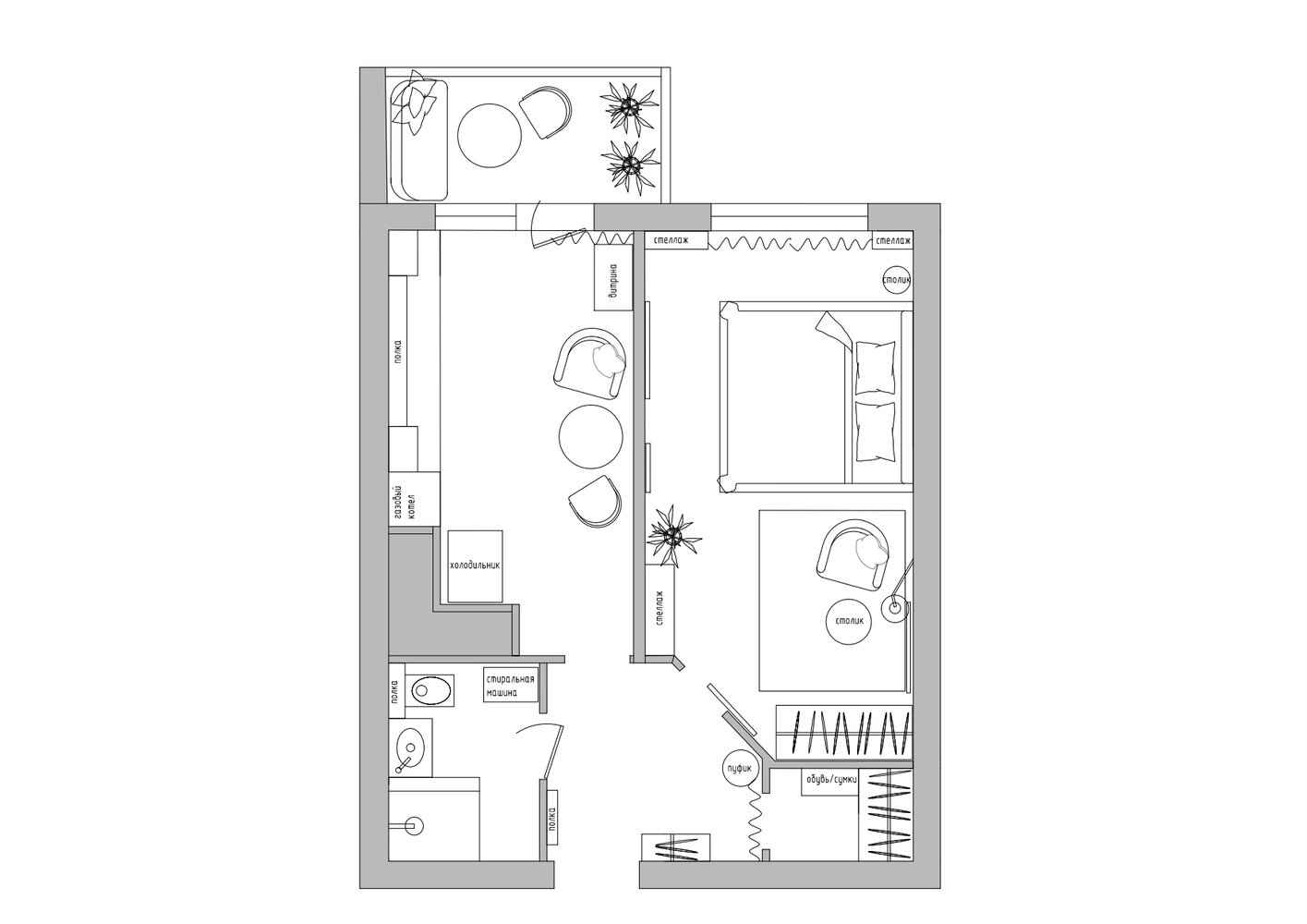 Атмосферная однушка 41 м² с розовыми стенамиДизайн