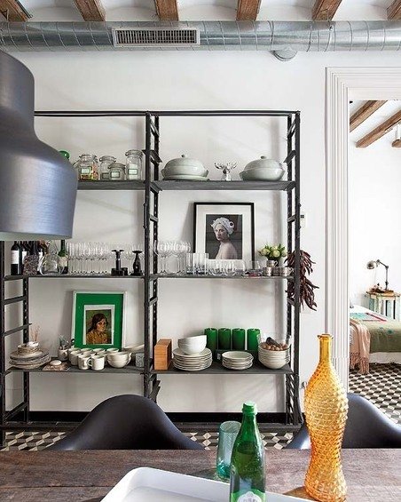 Фотография: Кухня и столовая в стиле Лофт, Скандинавский, Дом, Цвет в интерьере, Дома и квартиры, Белый, Плитка, Принт, Перегородка, Графика – фото на INMYROOM