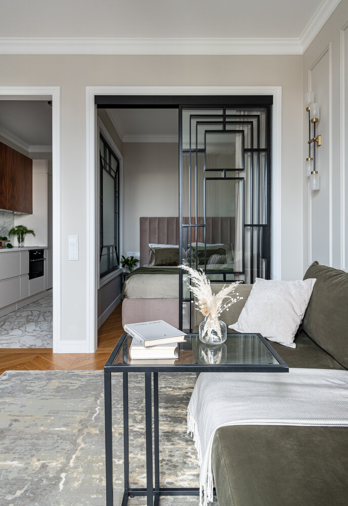 Трешка 67 м² с проходной кухней и спальней в нишеДизайн