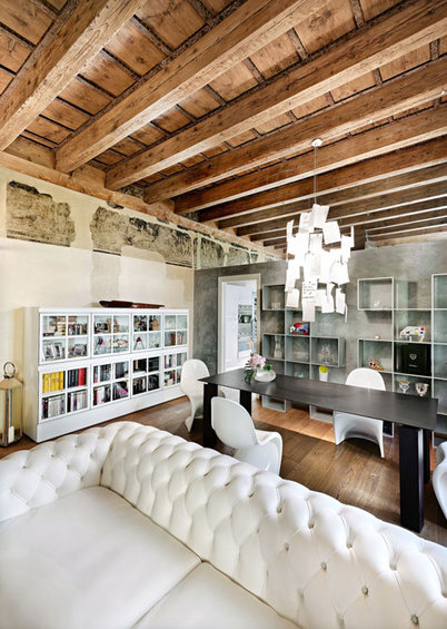 Фотография: Гостиная в стиле Прованс и Кантри, Скандинавский, Современный, Дом, Италия, Цвет в интерьере, Дома и квартиры, Белый, Балки – фото на INMYROOM
