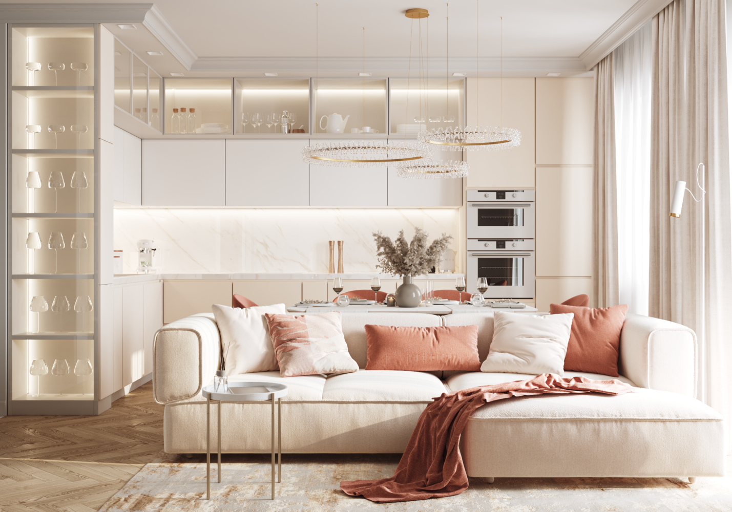 Воздушный интерьер двушки 55 м² для девушки4,7
