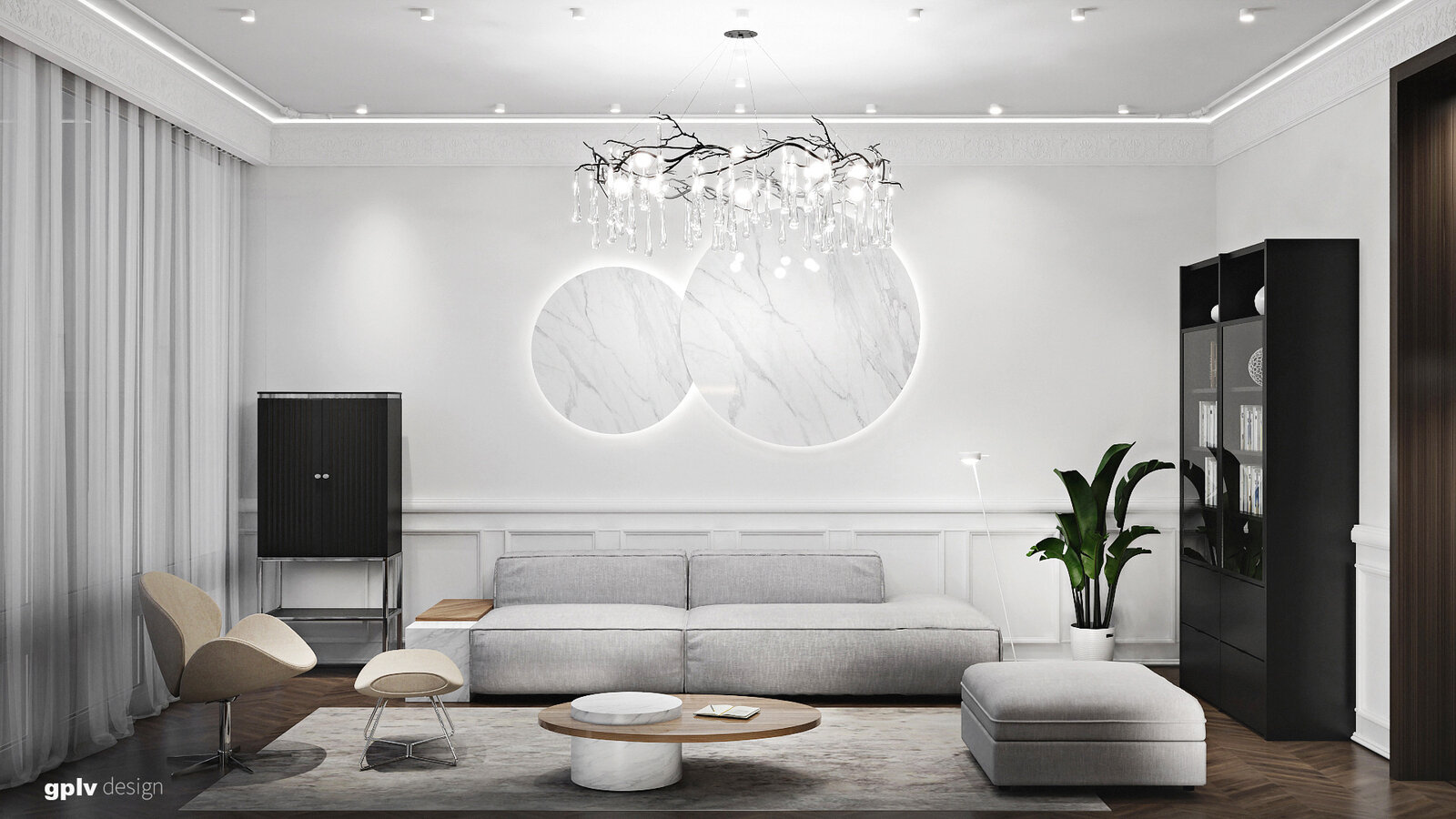 Совмещенная кухня гостиная в проекте ЖК Аэробус 150 Гамма