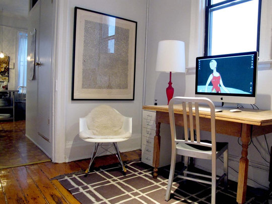 Фотография: Кабинет в стиле Скандинавский, Малогабаритная квартира, Квартира, Цвет в интерьере, Дома и квартиры, Стены, Нью-Йорк, Системы хранения, Квартиры – фото на INMYROOM