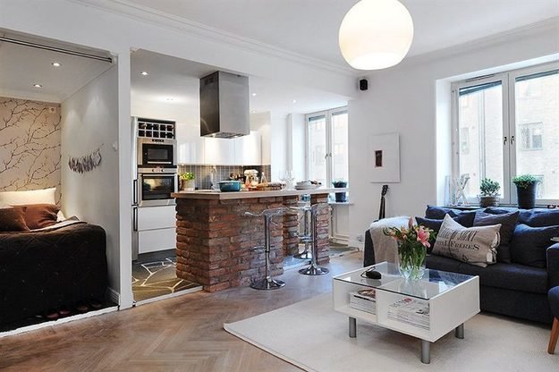 Фотография: Гостиная в стиле Лофт, Скандинавский, Кухня и столовая, Малогабаритная квартира, Квартира, Дома и квартиры – фото на INMYROOM