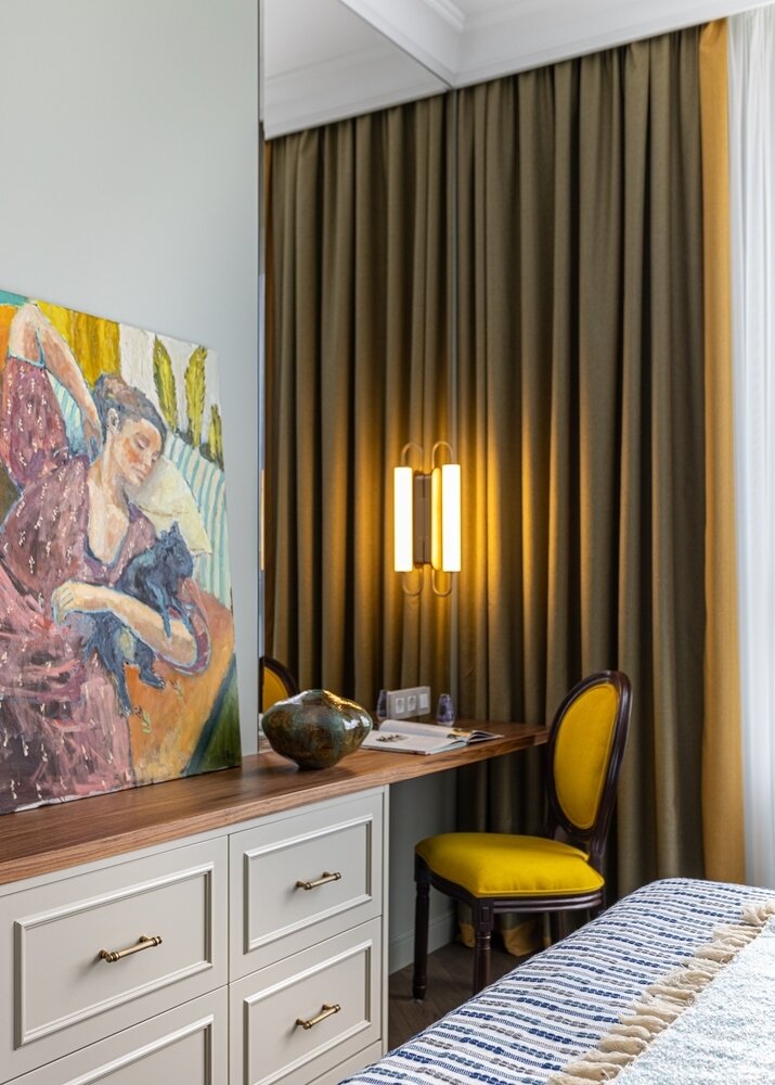 Уютная семейная двушка 63 м² с цветной мебельюДизайн