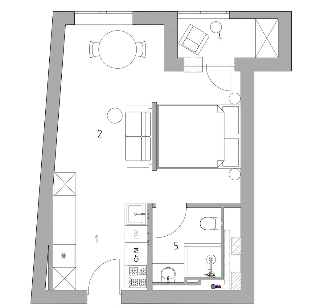Маленькая, но вместительная: 30 м² в стиле нео-мемфисДизайн