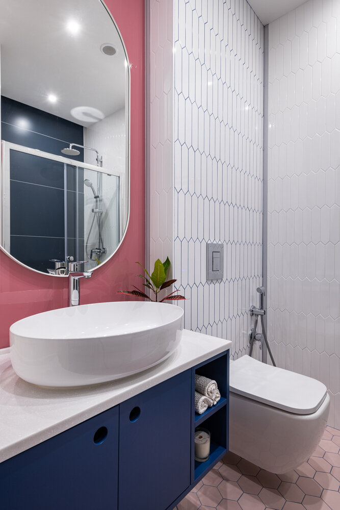 Уютная двушка 38 м² с белой кухней и ковром на стенеДизайн