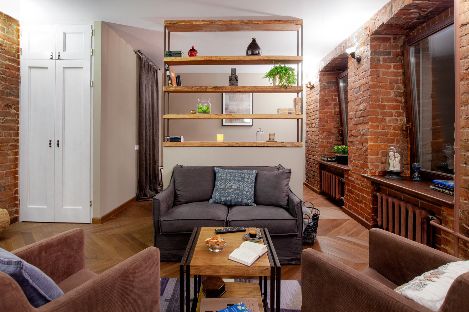 Фотография: Гостиная в стиле Лофт, Квартира, Студия, Проект недели, Красный, Коричневый – фото на INMYROOM