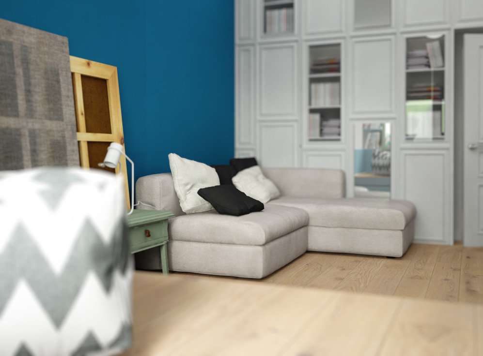 Фотография: Гостиная в стиле Лофт, Скандинавский, Квартира, Белый, Проект недели, Синий – фото на INMYROOM