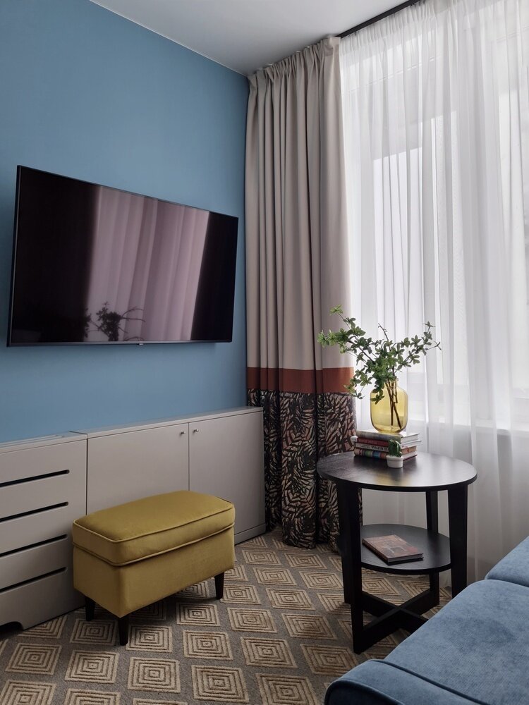 Пледы купили в интернет-магазине, также нашли недорогие безворсовые ковры. Отделка готовыми обоями позволила сэкономить на подготовке стен и краске. Основную роль в интерьере играет текстиль, а он в общем бюджете ремонта занимает небольшую часть.