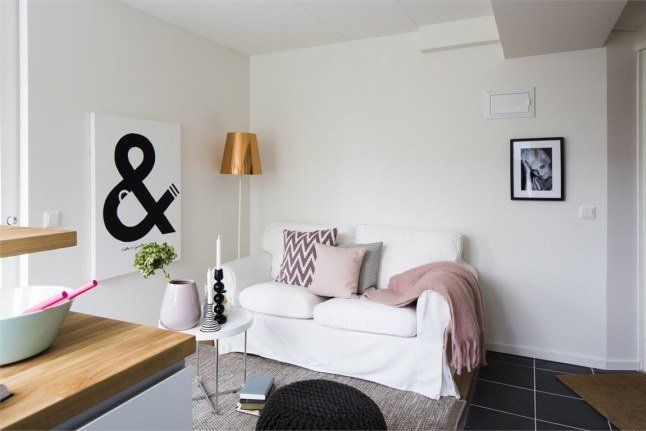 Фотография: Гостиная в стиле Скандинавский, Малогабаритная квартира, Квартира, Планировки, Хранение – фото на INMYROOM