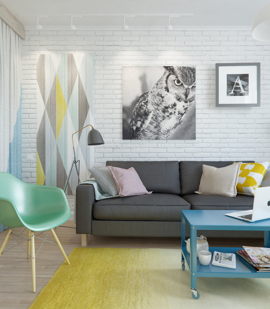 Фотография: Гостиная в стиле Лофт, Скандинавский, Эклектика, Малогабаритная квартира, Квартира, Планировки, Мебель и свет – фото на INMYROOM