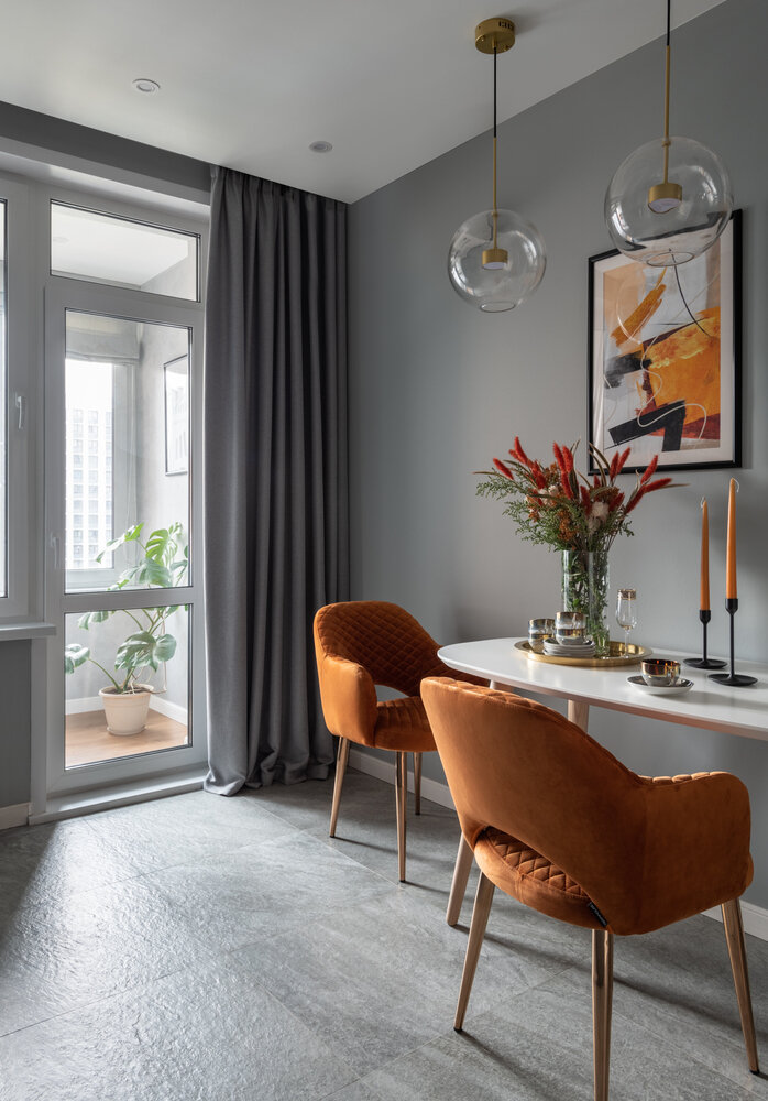На полу в прихожей и кухне использовали керамогранит — наиболее практичное решение.
