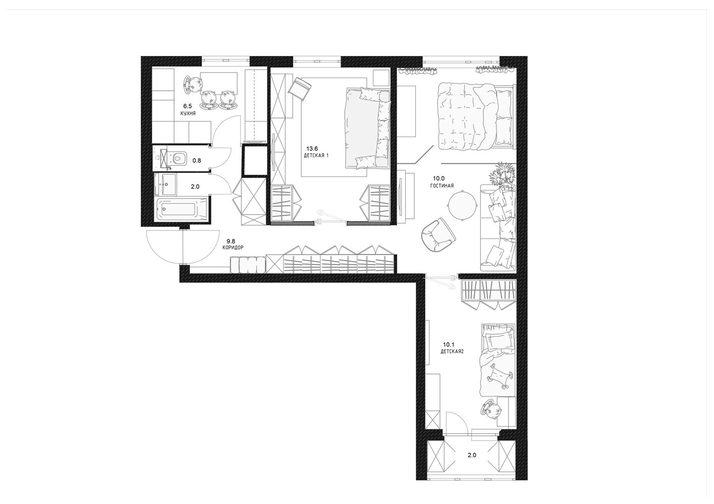 Классная переделка трешки в типовой панельке 63 м²Дизайн