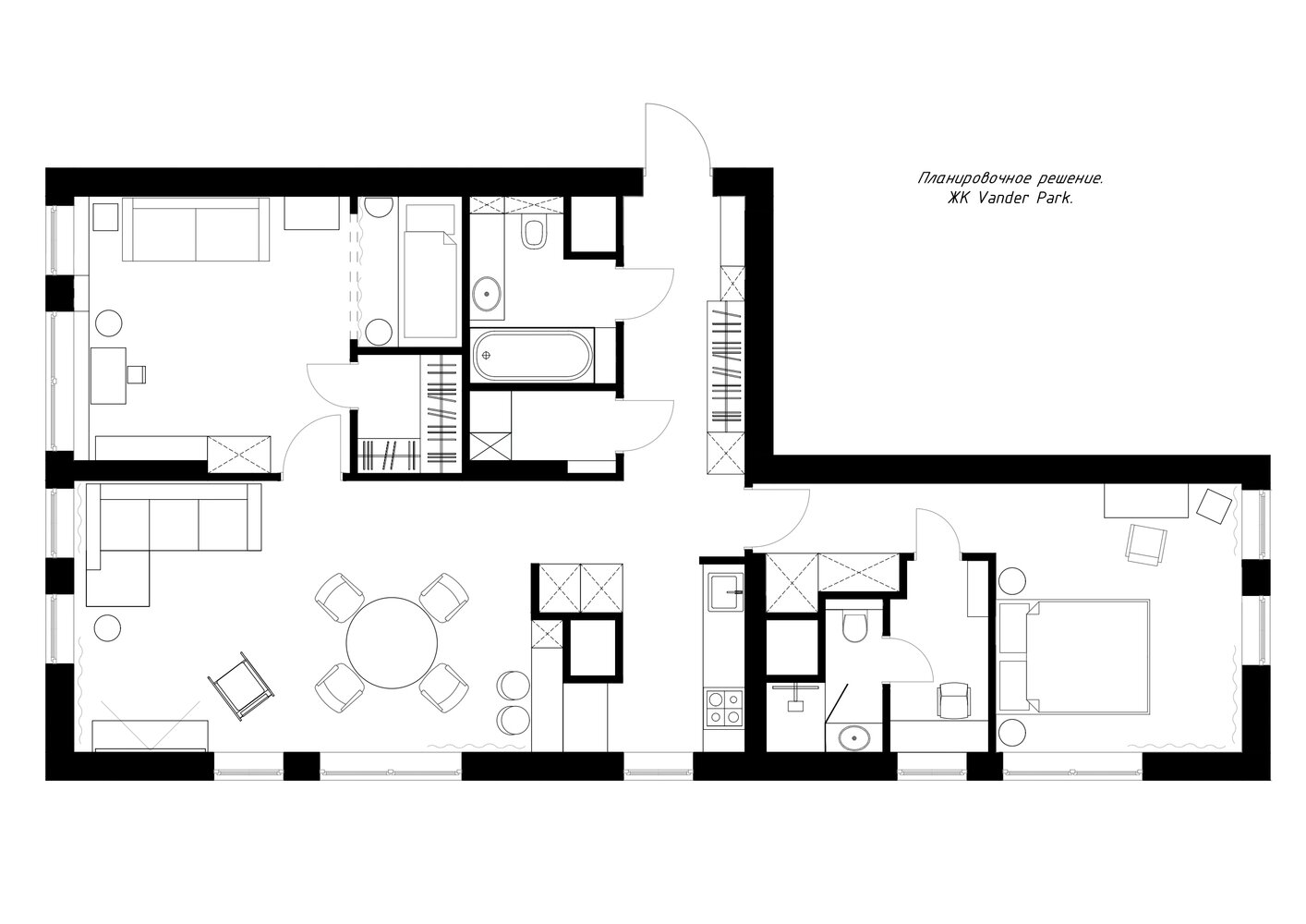 Нестандартная трешка 100 м² с маленькой кухней в нишеДизайн