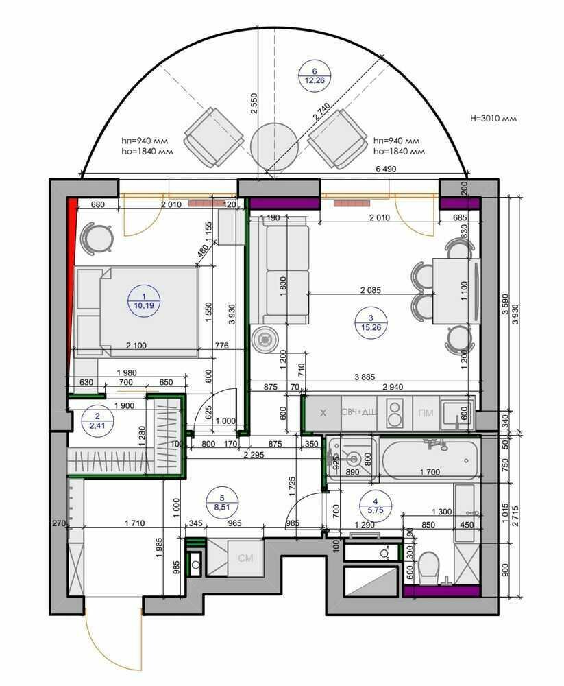 Солнечная евродвушка 40 м² для артистки циркаДизайн