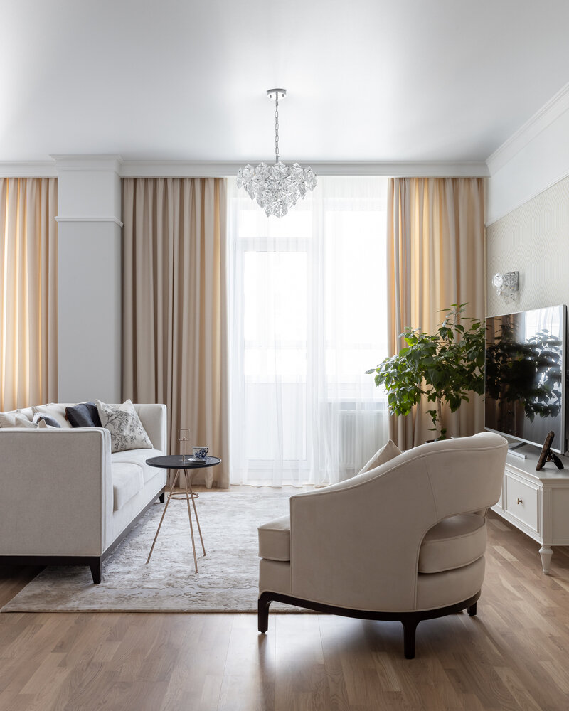 Двушка 70 м² в классическом стиле с белой кухней4,8