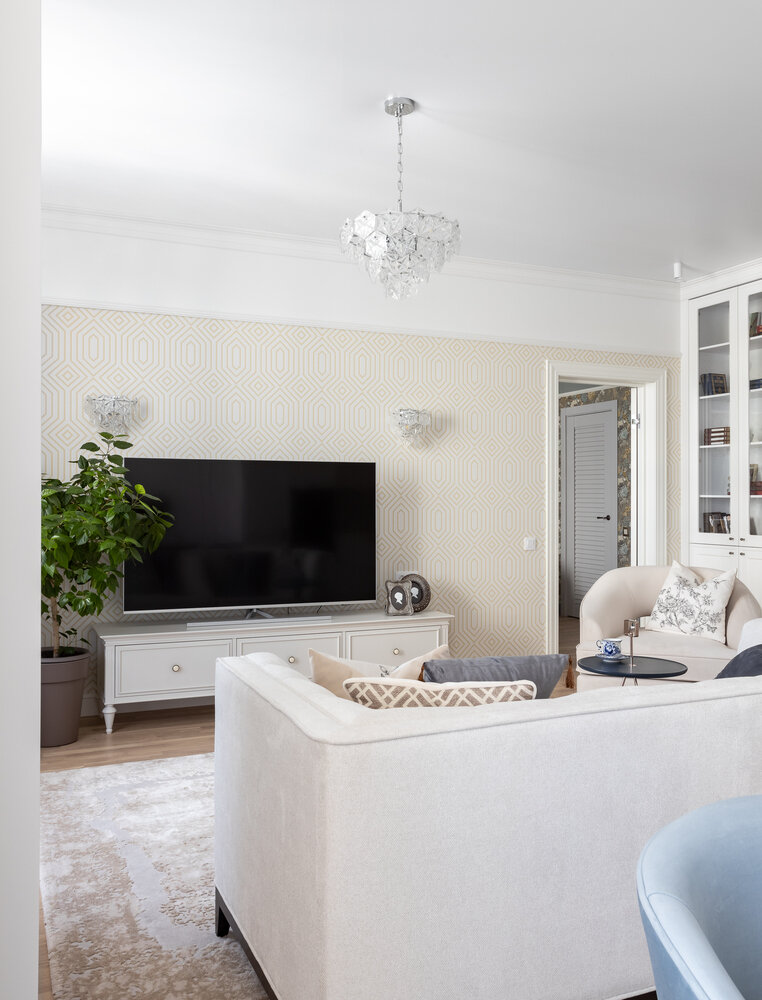 Двушка 70 м² в классическом стиле с белой кухней4,8