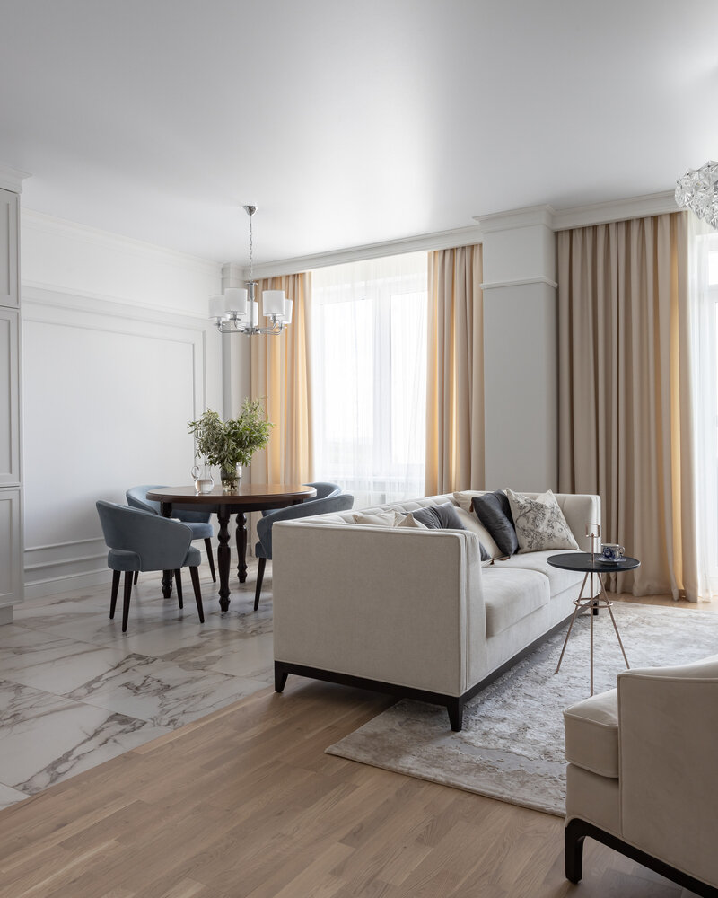 Двушка 70 м² в классическом стиле с белой кухней4,6