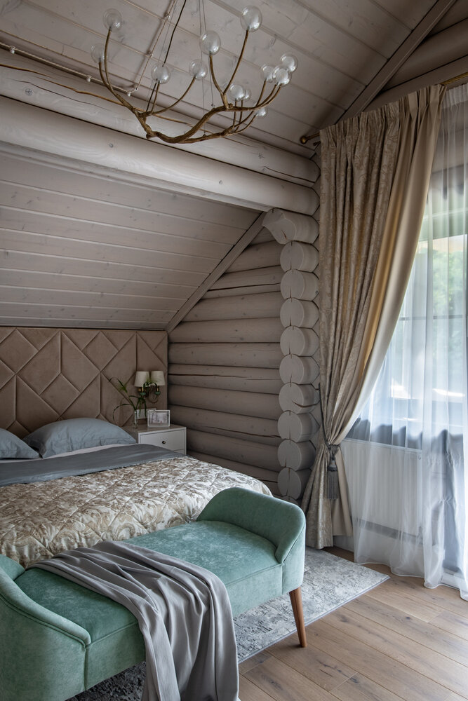 Красивый бревенчатый дом со вторым светом и каминомДизайн