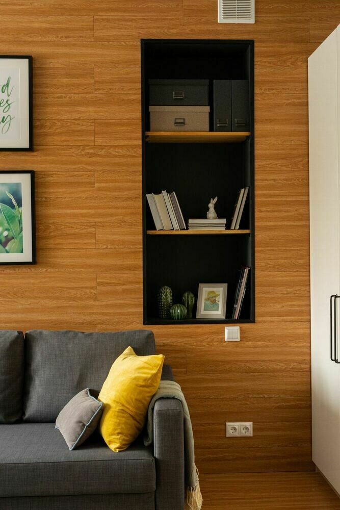 Фотография: Гостиная в стиле Скандинавский, Современный, Малогабаритная квартира, Квартира, Студия, Проект недели, Москва, Сталинка, Кирпичный дом, до 40 метров, RodenHome, Екатерина Паршинцева – фото на INMYROOM