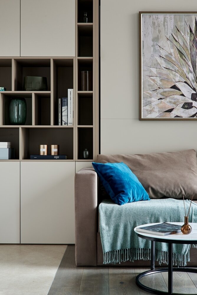 Как на 35 м² разместили студию и скрытое хранениеДизайн