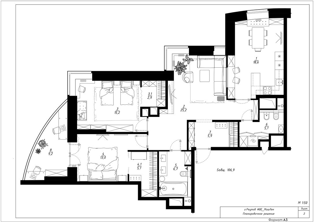 Фотография: Планировки в стиле , Современный, Квартира, Проект недели, Реутов, 3 комнаты, Более 90 метров, Елена Бунак – фото на INMYROOM