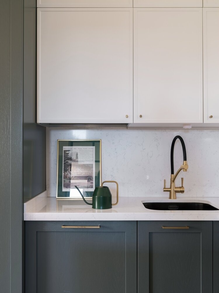 Столешницу и кухонный фартук сделали из одного материала, чтобы был минимум швов.