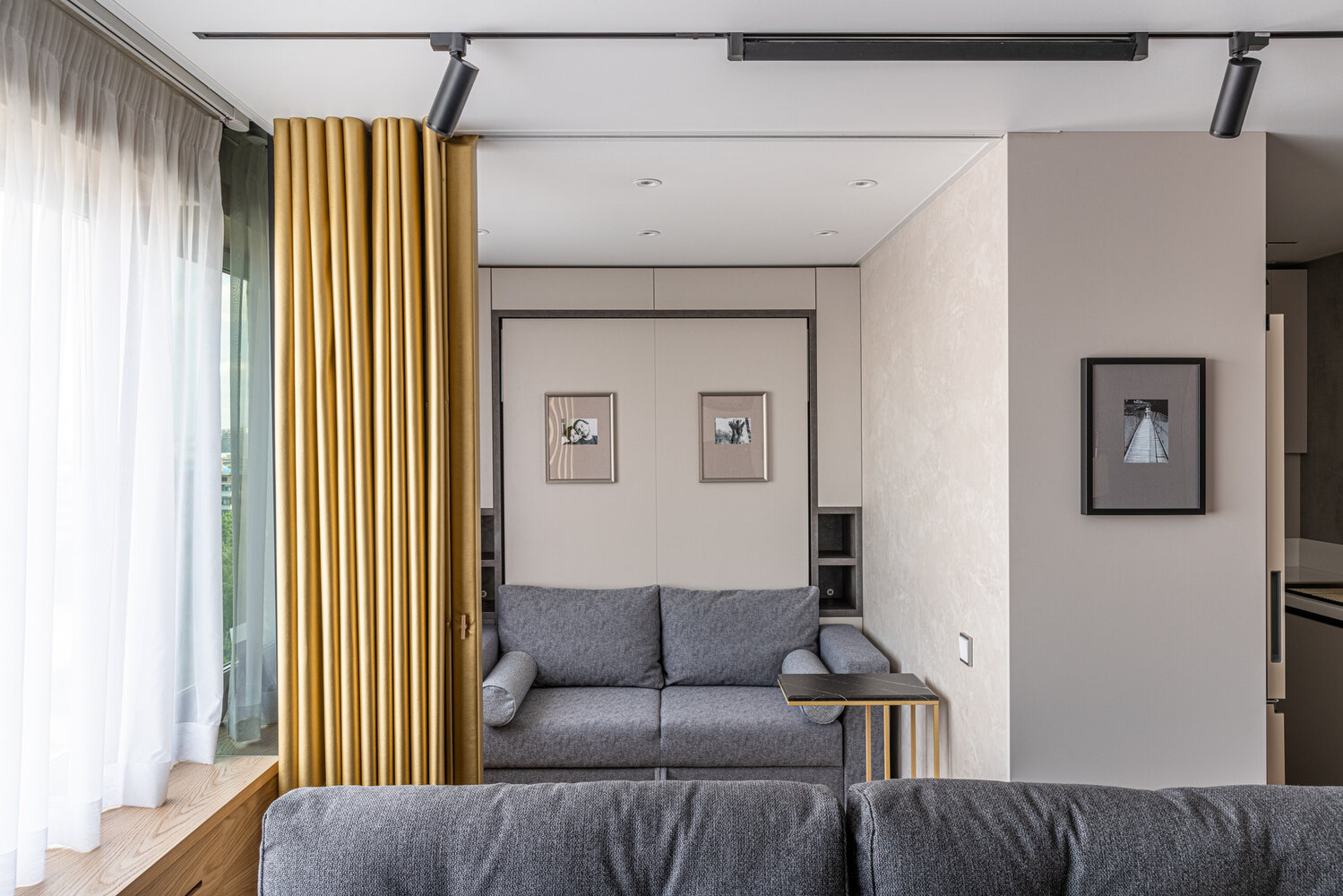Фотография: Гостиная в стиле Современный, Кухня и столовая, Спальня, Лофт, Хай-тек, Квартира, Проект дня, Москва, до 40 метров, Игорь Куркин – фото на INMYROOM