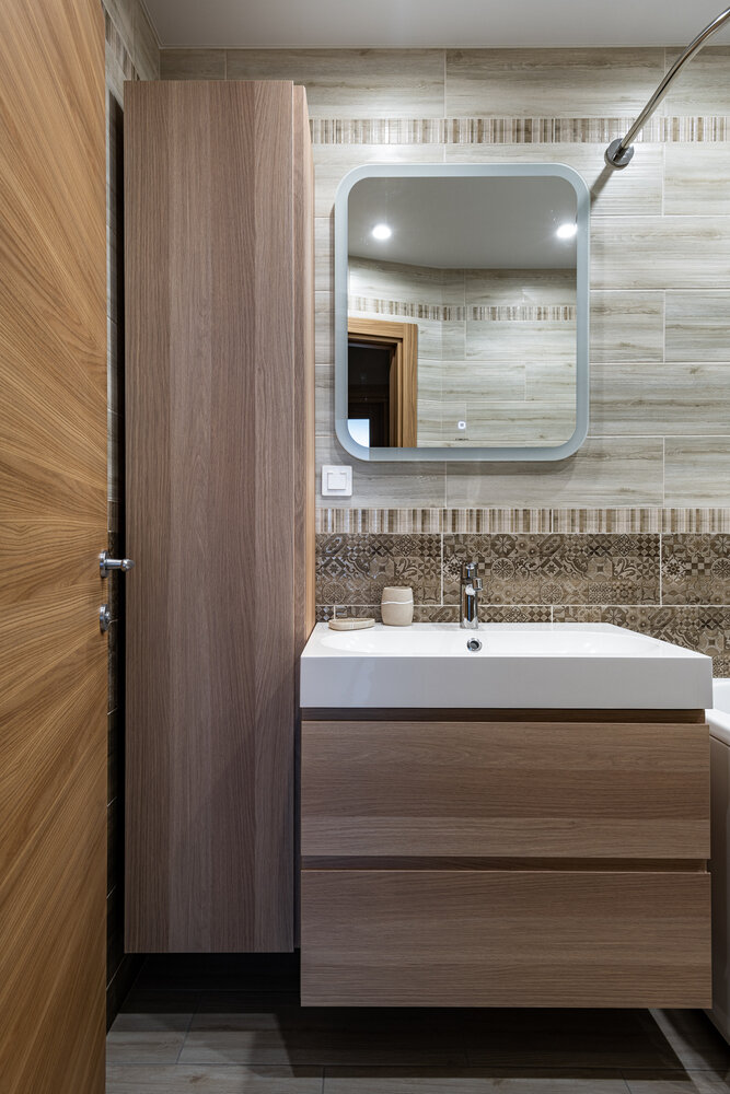 Базовый интерьер двушки 67 м² с цветными акцентамиДизайн