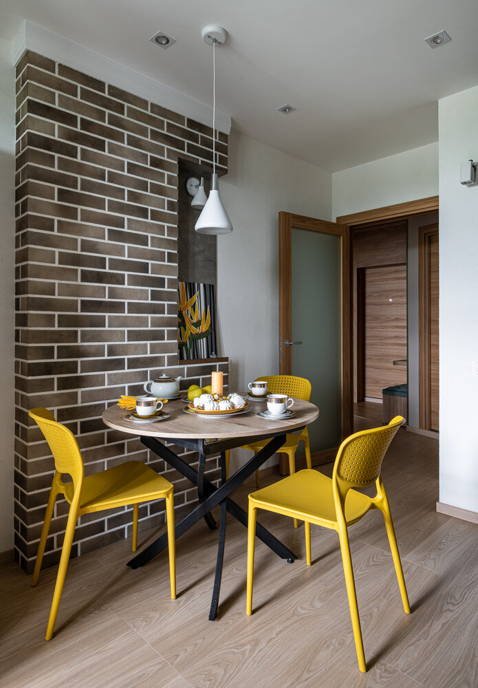Базовый интерьер двушки 67 м² с цветными акцентамиДизайн