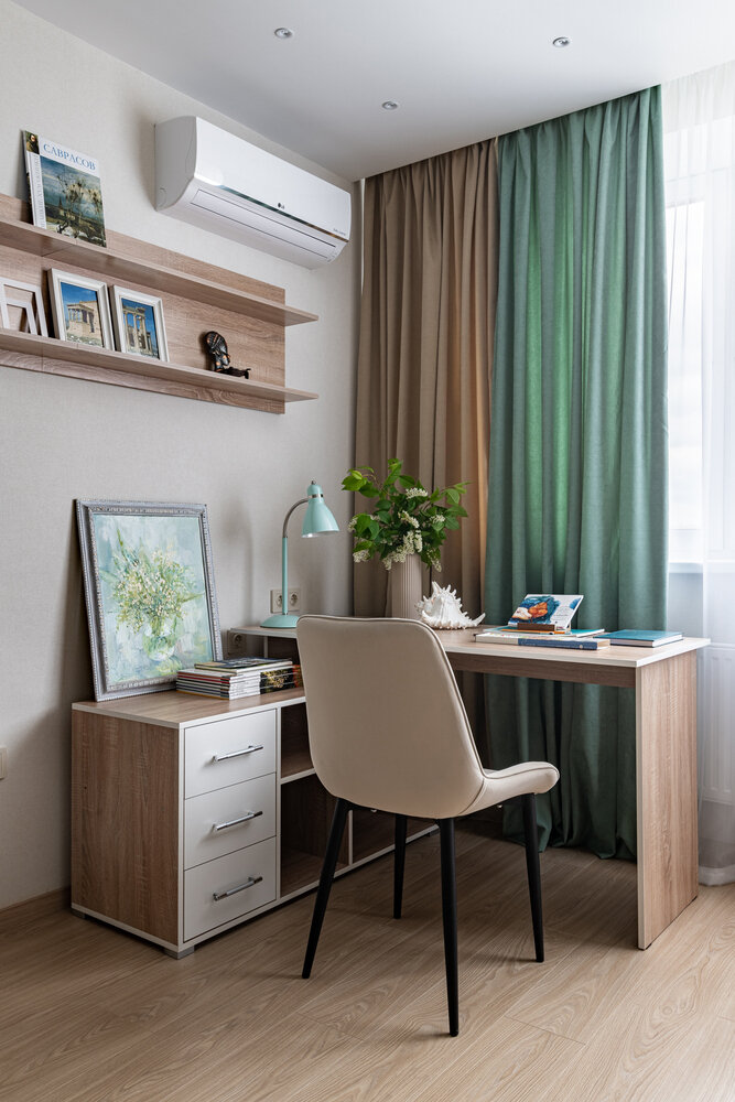 Базовый интерьер двушки 67 м² с цветными акцентамиДизайн
