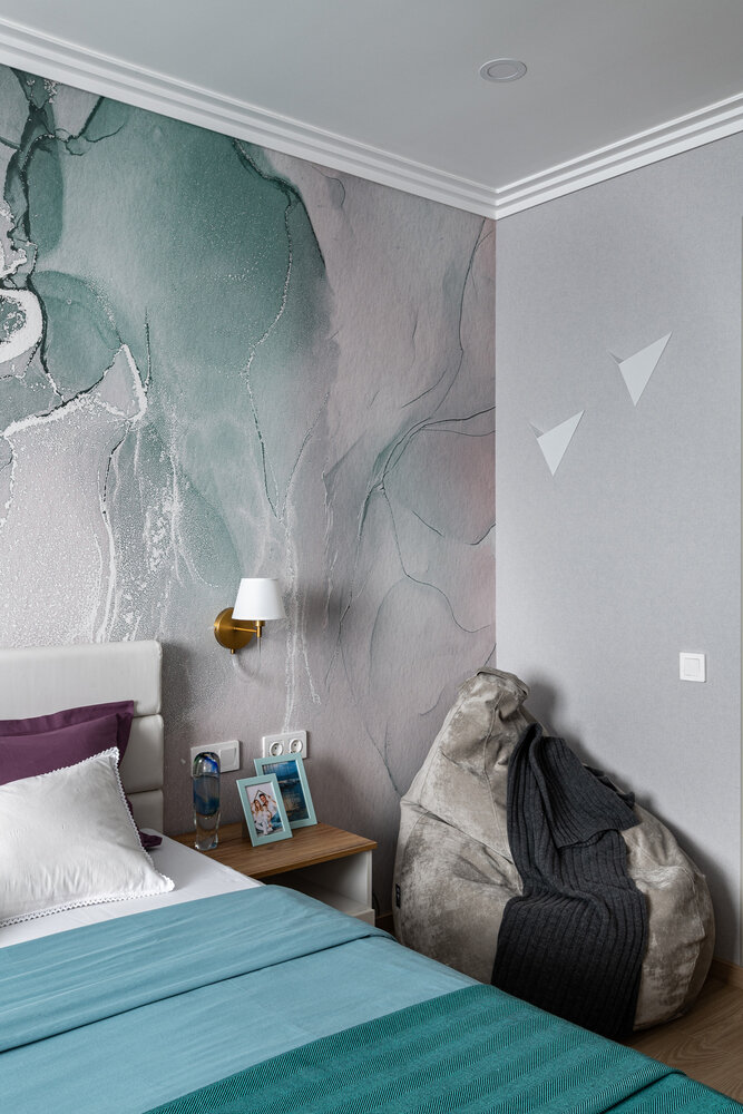 Базовый интерьер двушки 67 м² с цветными акцентамиДизайн