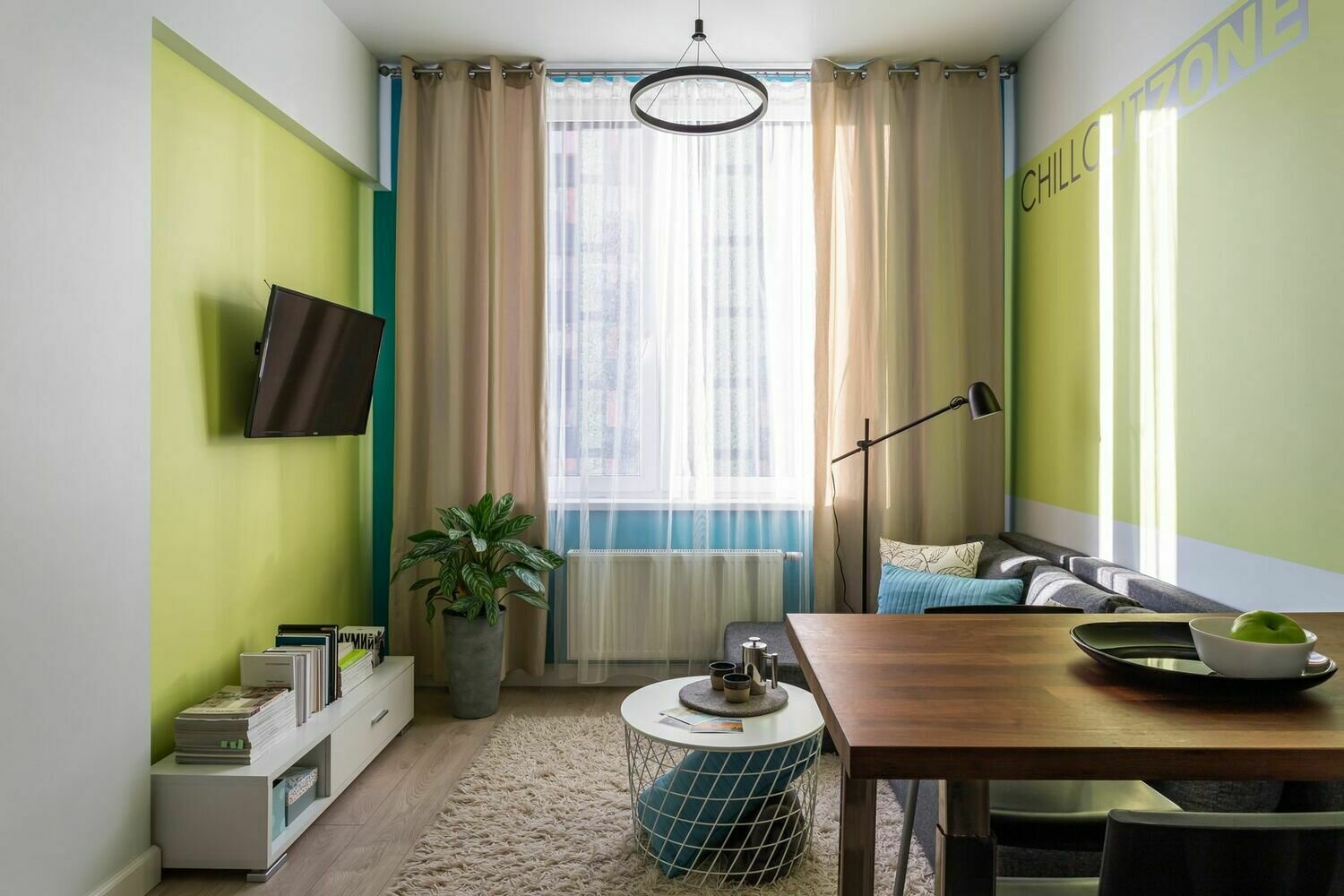 Бюджетный ремонт евродвушки 36 м² в неоновых цветах3,9
