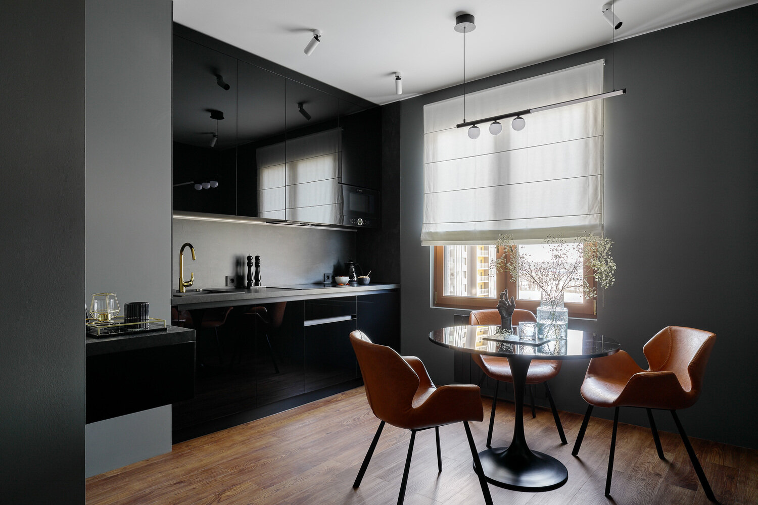 Евродвушка 35 м² с серыми стенами и оранжевым потолком4,5