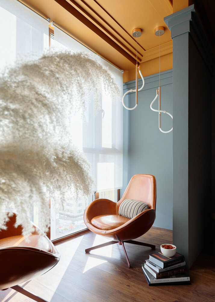 Евродвушка 35 м² с серыми стенами и оранжевым потолком4,6