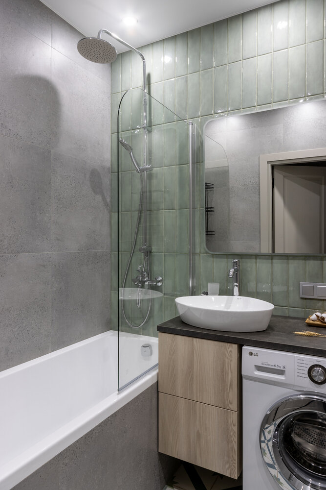 Двушка 71 м² с фактурной отделкой и яркими акцентамиДизайн