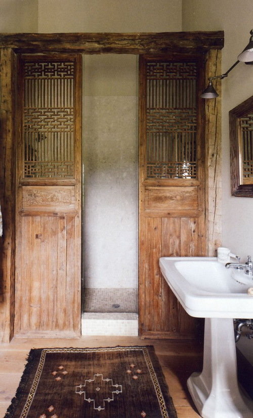 Фотография: Ванная в стиле Прованс и Кантри, Восточный, Эклектика, Декор интерьера, Декор, Прочее, Советы, кирпичная стена в интерьере, современный интерьер в квартире старого фонда, метлахская плитка в интерьере, лепнина в интерьере – фото на INMYROOM