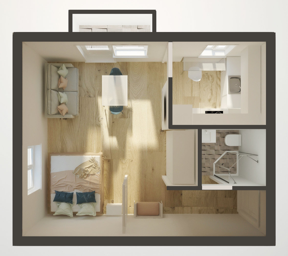 Фотография: Спальня в стиле Современный, Эклектика, Малогабаритная квартира, Квартира, Планировки, Перепланировка, Кирпичный дом, 1 комната, до 40 метров – фото на INMYROOM