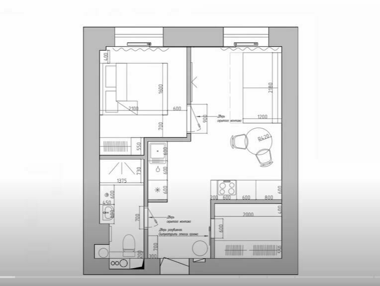 Из однушки в евродвушку 38 м² с гардеробнойДизайн
