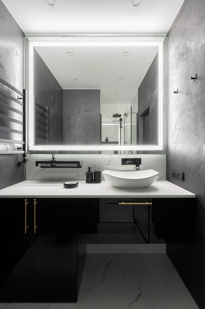Евродвушка 35 м² с серыми стенами и оранжевым потолком4,7